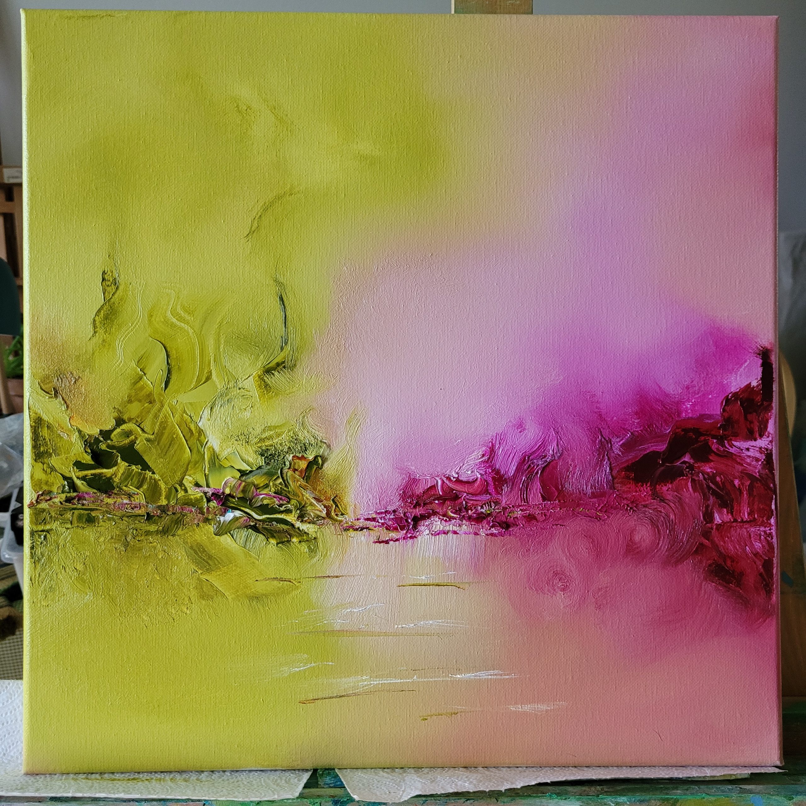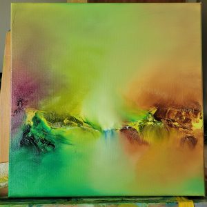 Dette er et udvalg af mine malerier i de grønne nuancer- Galleri grøn. Bemærk at der er flere slags grønne i samme maleri, både varme og kolde grønne. I oliemaling og ved udtoning af farverne holdes “de hver for sig” for ikke blande de nuancer der ikke kan sammen. Hvert område er fint som i Neptun i grønne toner og en enkel strejf af Magenta eller som i maleriet “Sommer” en serie af gul og gulbrun. Nogle gange lægger jeg små bitte krystaller ind i malerierne, eller en smule glimmer for at skabe større lyseffekter.